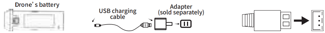 - First, connect your USB cable to the drone battery, then connect it to your favorite charging source.