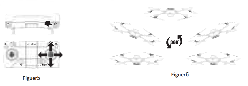 Long-press the 360°Flip button to flip the drone. The remote control will Di twice, indicating the drone is in Flip Mode. ext, move the direction stick up or down, and the drone will flip up or down (Figure 5). Move the direction stick to the right or left, and the drone will flip left or right.