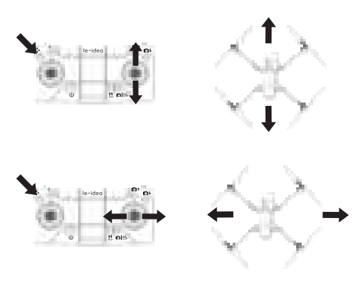 Push the DIRECTION CONTROL STICK up to fly the drone forward, and pull the DIRECTION CONTROL STICK down to fly the drone backward