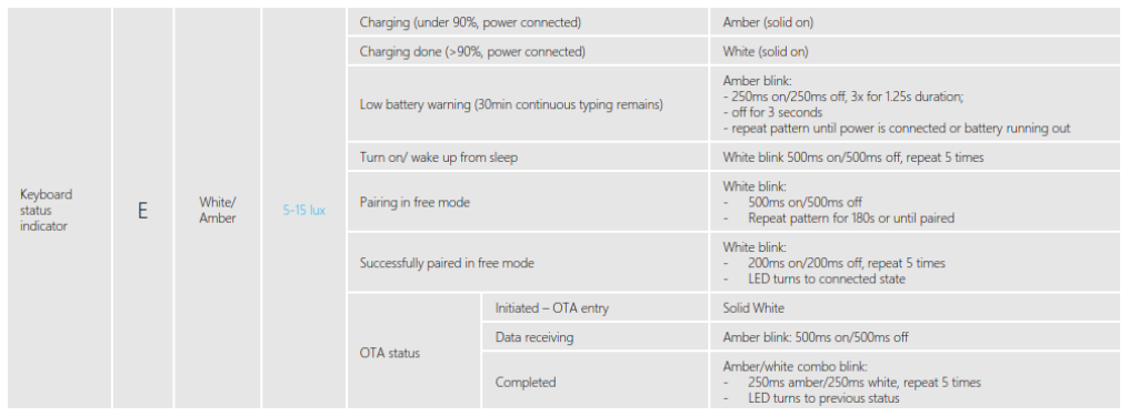 The status light on the right side of the Lenovo Yoga Book 9 Bluetooth Keyboard Yoga Book 9 14 Bluetooth KB, indicates the power and connection status of the keyboard.
