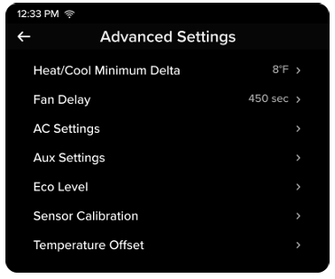 Use the Advanced Settings screen to fine-tune your thermostat settings. Follow the on-screen instructions for more details.