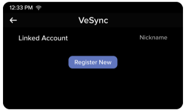 Use the My VeSync screen to view your linked VeSync account information. You can also use this screen to register or re-register your thermostat if necessary.