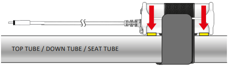 For proper mounting, ensure rubber pads are in contact with the frame. Then fasten the Velcro strap firmly. INFINITE LIGHT POWER PACK+, INFINITE LIGHT POWER PACK XL+.