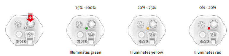 When powered off, click the button once to momentarily LEZYNE 74670 Power Pack XL Infinite Light battery status.