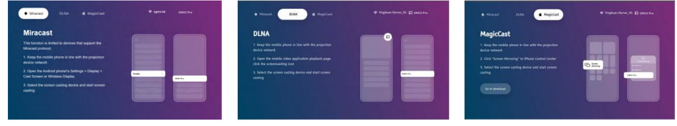 For Android/Windows/iOS devices. Click, we provide three methods on the same screen. Please choose different connection methods according to different devices.