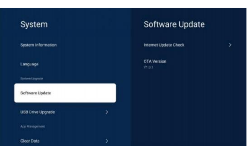 - Select System-Software Update->Internet Update Check to upgrade by Internet.