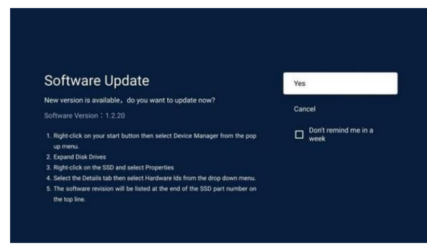 - If new version software is available, it will show as below, the user can select Yes to download the software or Select Cancel to exit this page (This is the Optional Upgrade Page, the user can select upgrade or not.)