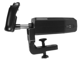 First, fix the Flight Yoke to your table or desk by inserting the prongs of the mounting clamp into the holes on the yoke base and then tightening the screw mechanism until the yoke is firmly attached (be careful not to overtighten the screw as you may damage the clamp). Next, screw the mounting plate to the Throttle Quadrant using the four screws provided.