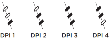 DPI values are shown using the three LEDs indicated in the mouse drawing. The image below shows which DPI value is being indicated by the LED panel.