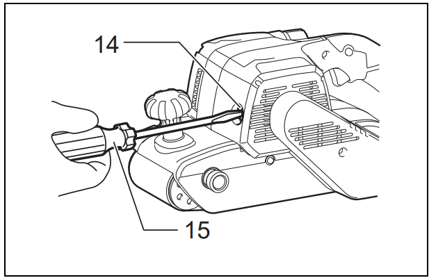 - Make sure the belt is not contacting the workpiece before the switch is turned on.