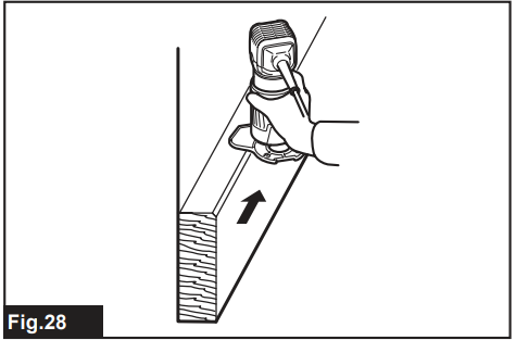 The tool does not start with the I side of the switch pressed, even when the tool is plugged. At this time, the indication lamp blinks in red and shows that the unintentional restart proof device is in function. To cancel the unintentional restart proof, press the O side of the switch.