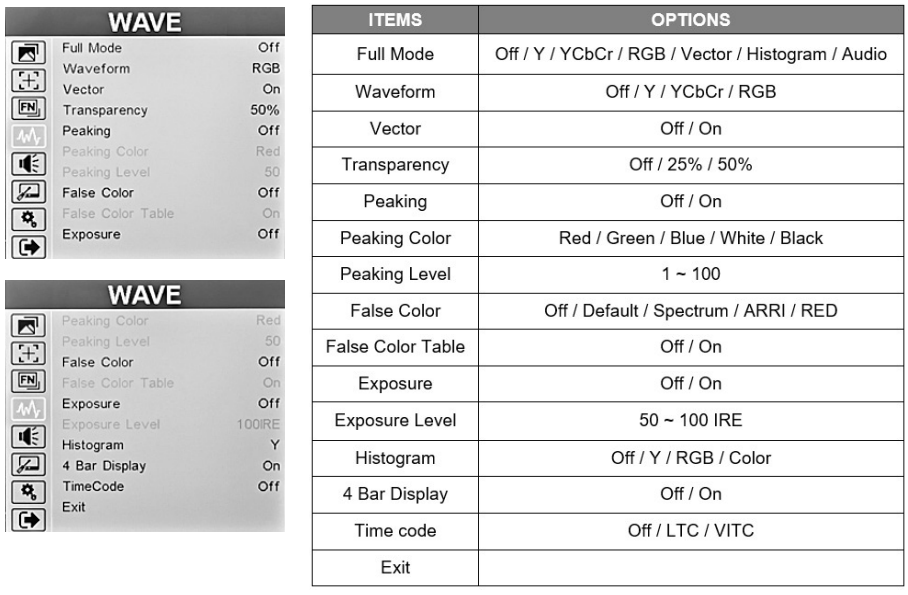• Access the WAVE menu page and check that the False Color mode is OFF.