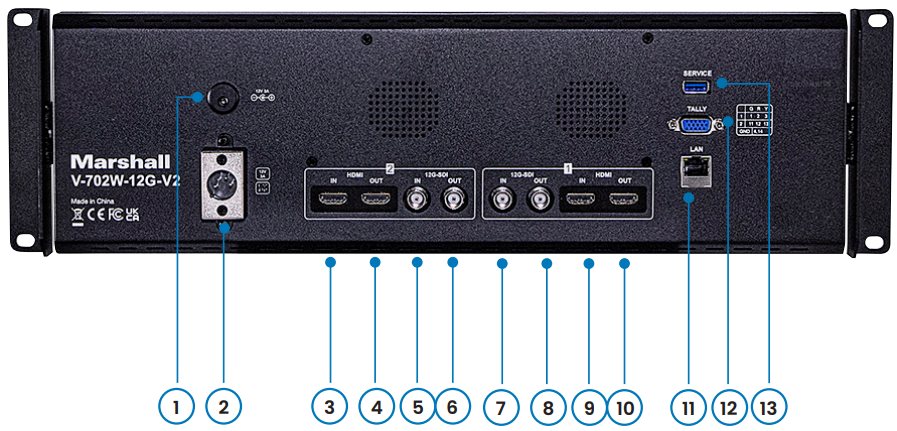 3,4,9,10. HDMI Digital Video ConnectorsMarshall-V-702W-12G-V2-Rack-Mount-Monitor-Figure-5