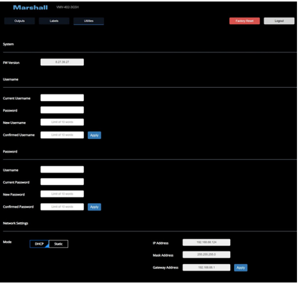 • The top of the Utilities page displays the current firmware version.