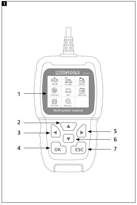 - Use the up and down buttons to mark Meec Tools 015177 OBD-II Fault Code Reader Read Codes in the diagnostic menu and press OK to confirm.