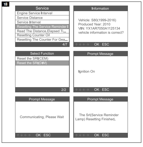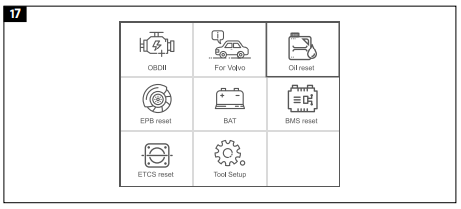 Select Oil Reset. Special functions include resetting after an oil change and BMS, EPB, and ETC resetting.