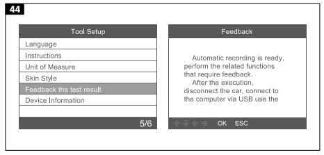 - In the case of impossible test results or other problems using the product, the test results can be sent to the manufacturer with the feedback function. Select the item Feedback The Test Result. The following is shown on the display.y