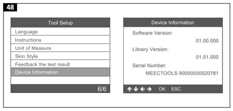 Mark the item Vehicle Information and press OK to show vehicle Meec Tools 015177 OBD-II Fault Code Reader information, for example, le the Vehicle Identification Number, VIN, Calibration ID, CID, and Calibration Verification Number, CVN.