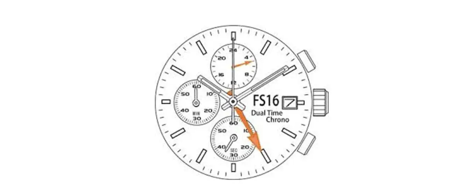 - After the date has been set, push the Miyota Cal. FS16/FS26 Dual Time Chronograph crown back to the normal position.