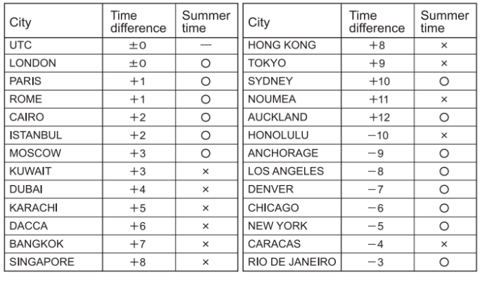 When moving to a country or area that is in a different time zone, the current time in the “local time” can be corrected. As the date calendar is linked with time, the date in the “local time” is also corrected.