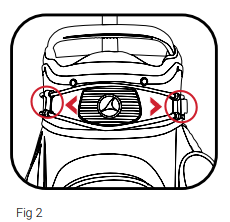 - Unclip the elasticated straps from the housing by pulling outwards in the direction shown