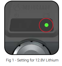 - The battery indicator (right-hand LED) will MOTOCADDY SE Electric Trolley Golf Trolley show ‘Green’ for 12.8V Lithium (fig. 1) or ‘Red’