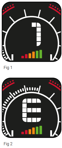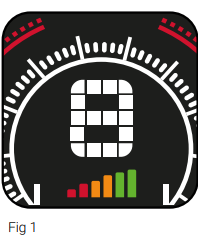 A fully charged battery will show from left to right – two short red bars, two medium orange bars, and two larger green bars (fig. 1).
