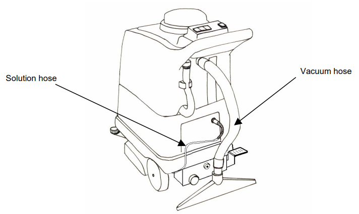 - These to the machine, remove the vacuum hose, which connects the solution tank to the vacuum shoe, and the solution hose.
