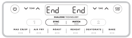 - When cooking is complete in each zone, the unit will beep and “End” will appear on the display.