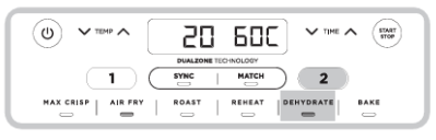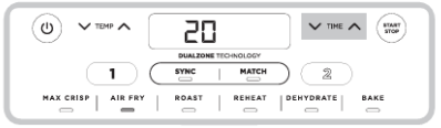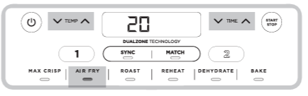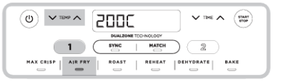 - SYNC button: Automatically syncs the cook times to ensure both zones finish at the same time, even if they have different cook times.