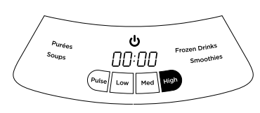 - Plug the power cord into an electrical outlet and press POWER to turn on the blender.