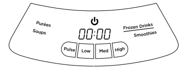 - When using a blending speed: timer starts at zero (00:00) and increases during operation, showing time elapsed since blending began.