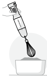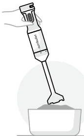 - Carefully submerge the blending arm or whisk into the mixing vessel with the ingredients that you wish to mix or blend.