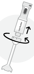- Insert the bottom of the motor body into the top of the blending arm; push the motor body down and turn it clockwise until it locks.