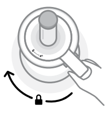 - Place the Work Bowl Lid on top of the Work Bowl. Turn the lid clockwise, lining up the arrows on the lid and handle, to lock into place.