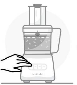 - After plugging in the unit, press your desired speed to start processing food. The blue light will illuminate over the speed that is currently running.