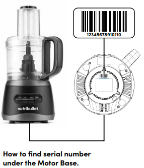 To find the serial number, check under the Motor Base. If you cannot find the serial number, call customer service for assistance.