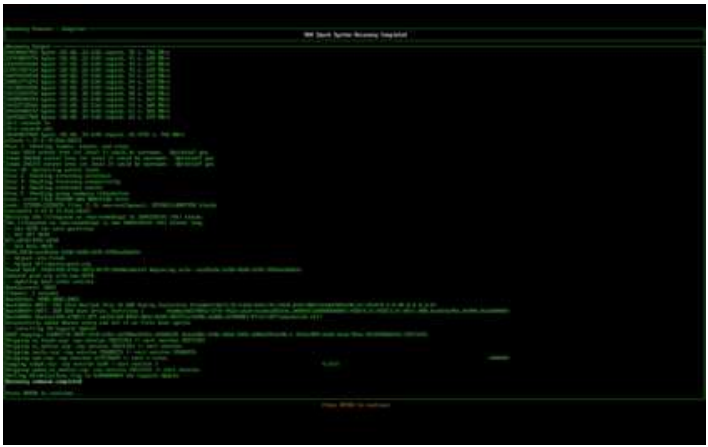 - When the process is complete, review the progress screen and follow the prompt to continue. Scroll or page through the recovery output if needed, for example, during customer support.