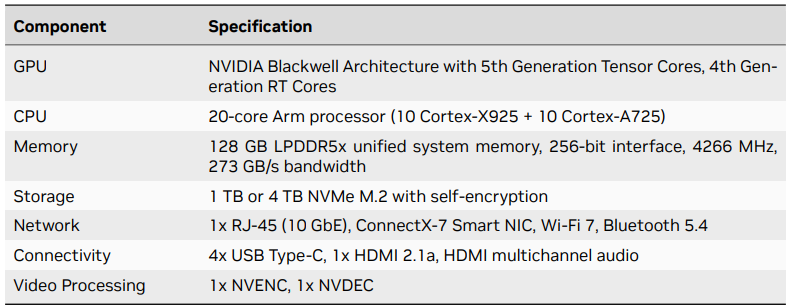 - NVIDIA Grace Blackwell architecture with integrated GPU and CPU