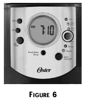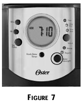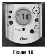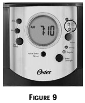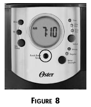 The FRESH BREW™TIMER feature lets you know how long your coffee has been waiting for you. At the start of the brew cycle, the FRESH BREW™ TIMER feature will automatically be activated, and the clock display will change to show the time since brewing began. Incremental segments of the FRESH BREW™ TIMER feature will start to darken as an indication of how long the coffee has been waiting for you. Press the FRESH BREW™TIMER button once (Figure 8)