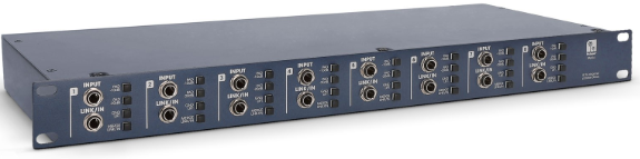 These problems are avoided with low impedance balanced signal routing. For this reason, this type of routing is used almost exclusively in professional studios and for live performances. The PAN16 is a passive DI box that contains 8 independent channels in the 19“ format.