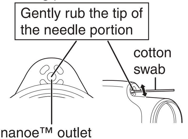 - A needle portion is located deep within the nanoe™ outlet. Using the swab, rub this portion gently about 5 times.