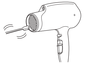 - Leaving the hair dryer with hair products or makeup still adhering to the handle or body may degrade the plastic, causing discoloration or cracking and malfunction.