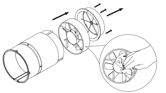- Remove the secured bracket from within Pioneer RV050AHRMCO2L Energy Recovery Ventilator the inner duct and take out the fan.