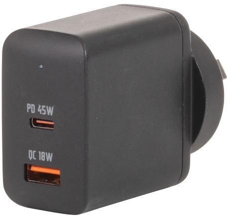 • Fast charges 2 USB-enabled devices (USB-C PD & USB-A) at the same time