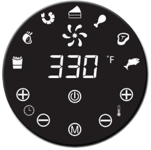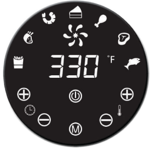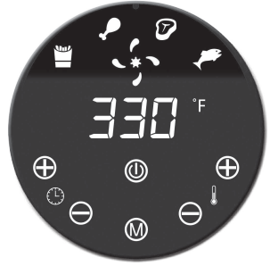 This display will keep track of the temperature and remaining cook time. - Blue Fan Icon