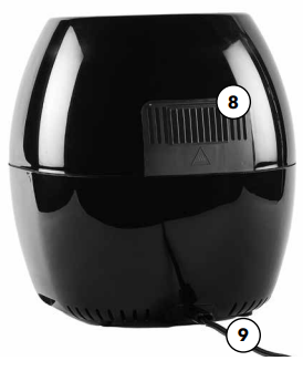 - Power Button: Once the Basket and Fry Tray are properly placed in the Main Unit Housing, the Control Panel will be illuminated. Pressing the Power Button once will set the appliance to a default cooking temperature of 370° F/188° C and time of 15 minutes.