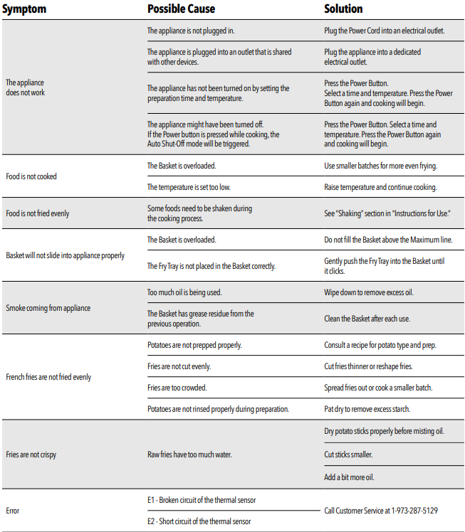- Should this happen, unplug the appliance. Allow time for the appliance to cool completely before restarting or storing.