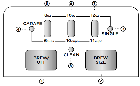 • Select your desired size, then press the Brew/Off Button once to begin the brew cycle.