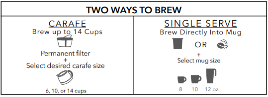 • Brew single-serve coffee pods, ground coffee, or a full 14-cup carafe with one machine.